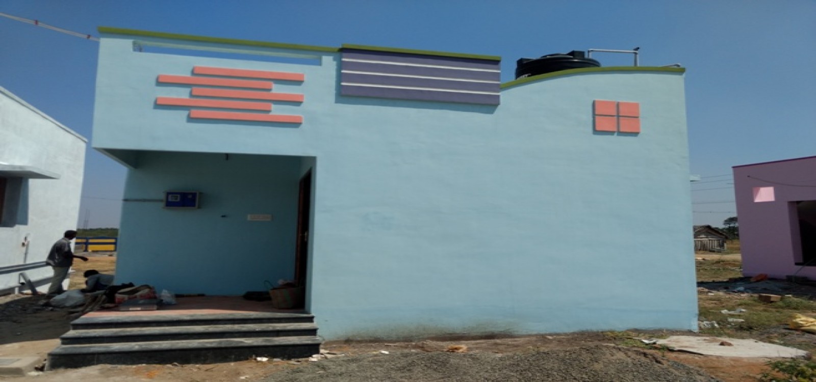 - Anti-Skid floor tile and 7 feet height wall tile for toilet